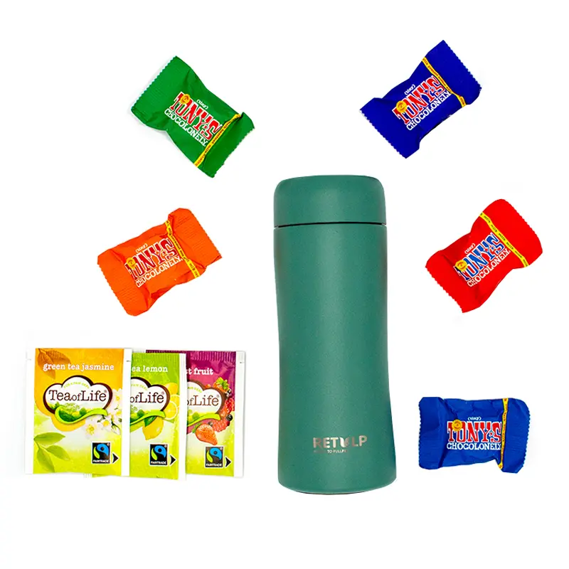 All das hat Retulp mit einer Kampagne verknüpft: Mission Indisposable 2020. Damit will Retulp gemeinsam mit seinen Kunden 20.000.000 Einweg-Plastikflaschen einsparen und bis 2020 20.000.000 Liter sauberes Trinkwasser spenden. Mission unmöglich? Nicht mit Ihrer Hilfe! Sehen Sie sich unser wunderschönes Sortiment an Retulp-Wasserflaschen an und wählen Sie die (Thermos-) Flasche, die am besten zu Ihrem Unternehmen passt. Gerne bedrucken wir es mit Ihrem Text oder Logo!