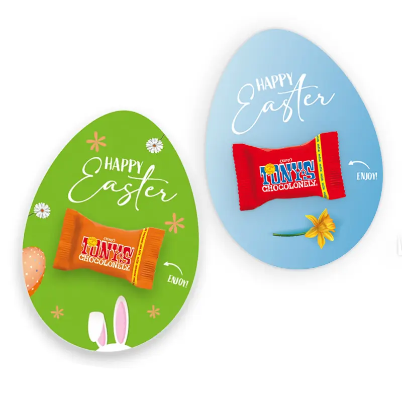 Auf der Suche nach einer Karte mit etwas Leckerem? Schauen Sie sich die Osterkarte mit Tiny Tony's oder einer kleinen Tony-Bar an. Sie können die Karten nach Ihrem eigenen Des ign bedrucken lassen.