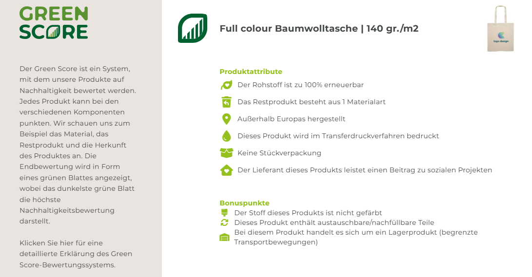 Wir verstecken die Herkunft unserer Produkte nicht – Transparenz wirkt besser. Wir zeigen offen, wo ein Produkt hergestellt wird, und kommunizieren dies klar. Fällt Ihnen „Made in China“ schwer? Dann gibt es häufig Alternativen näher an Europa. Diese Wahl lassen wir bewusst Ihnen. Die Herkunft wird stets im Green Score angegeben, damit Sie selbst entscheiden können, was zu Ihrer Organisation, Ihren Richtlinien oder Ihrem Bauchgefühl passt.