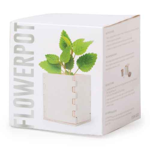 Sind Sie auf der Suche nach einem originellen Werbegeschenk? Dieser Blumentopf in Form eines Würfels besteht aus Holz und wird mit 6-8 Minzesamen geliefert, damit Ihre Kunden später von leckerem Minztee genießen können. Am Boden des Würfels befinden sich Löcher für eine ausreichende Belüftung.
