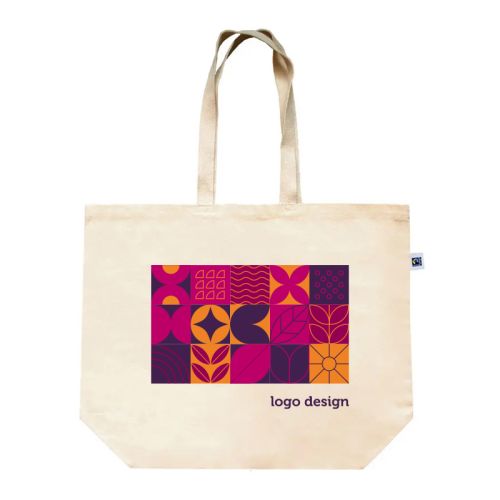 Auf der Suche nach einer großen Baumwolltasche zum Bedrucken? Diese Variante ist perfekt, denn sie hat eine Größe von nicht weniger als 59 x 48 x 18 cm. Die Tasche ist außerdem Fairtrade-zertifiziert, was bedeutet, dass die Baumwollbauern und -arbeiter einen fairen Preis für ihr Produkt erhalten.