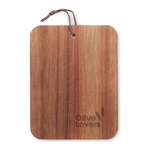 Jede Küche ist mit einem Schneidebrett ausgestattet. Deshalb ist dieses Schneide- und Servierbrett aus Akazienholz ein perfektes Geschenk. Das Brett misst 19,5 x 15 cm und verfügt über eine PU-Kordel.
