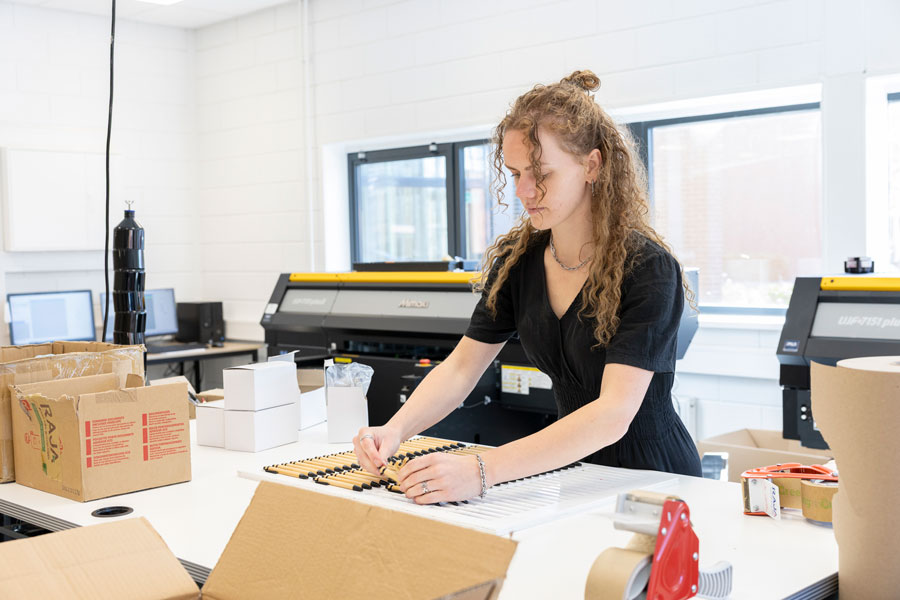 Das geht bei uns Hand in Hand. Wie ist das möglich? Durch gute Vereinbarungen mit unseren Zulieferanten, intelligentes Lagermanagement und eine effiziente Logistik. So können wir Sie am besten und schnellsten mit nachhaltigen Geschenken versorgen. Dank unserer eigenen Druckerei können wir beliebte Produkte wie Dopper, Samenpapier und Notizbücher schnell und zu wettbewerbsfähigen Preisen liefern.