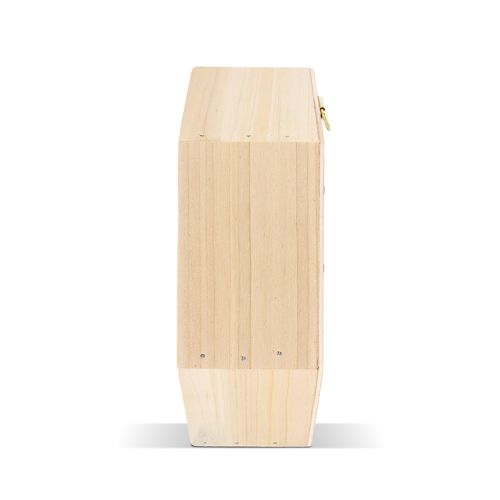 Das Bienenhaus kann vorne sowie an den Seiten links und rechts mit einem Logo oder einer Botschaft graviert werden. Eine bee-sondere Geschenkidee mit nachhaltigem und edukativem Charakter.